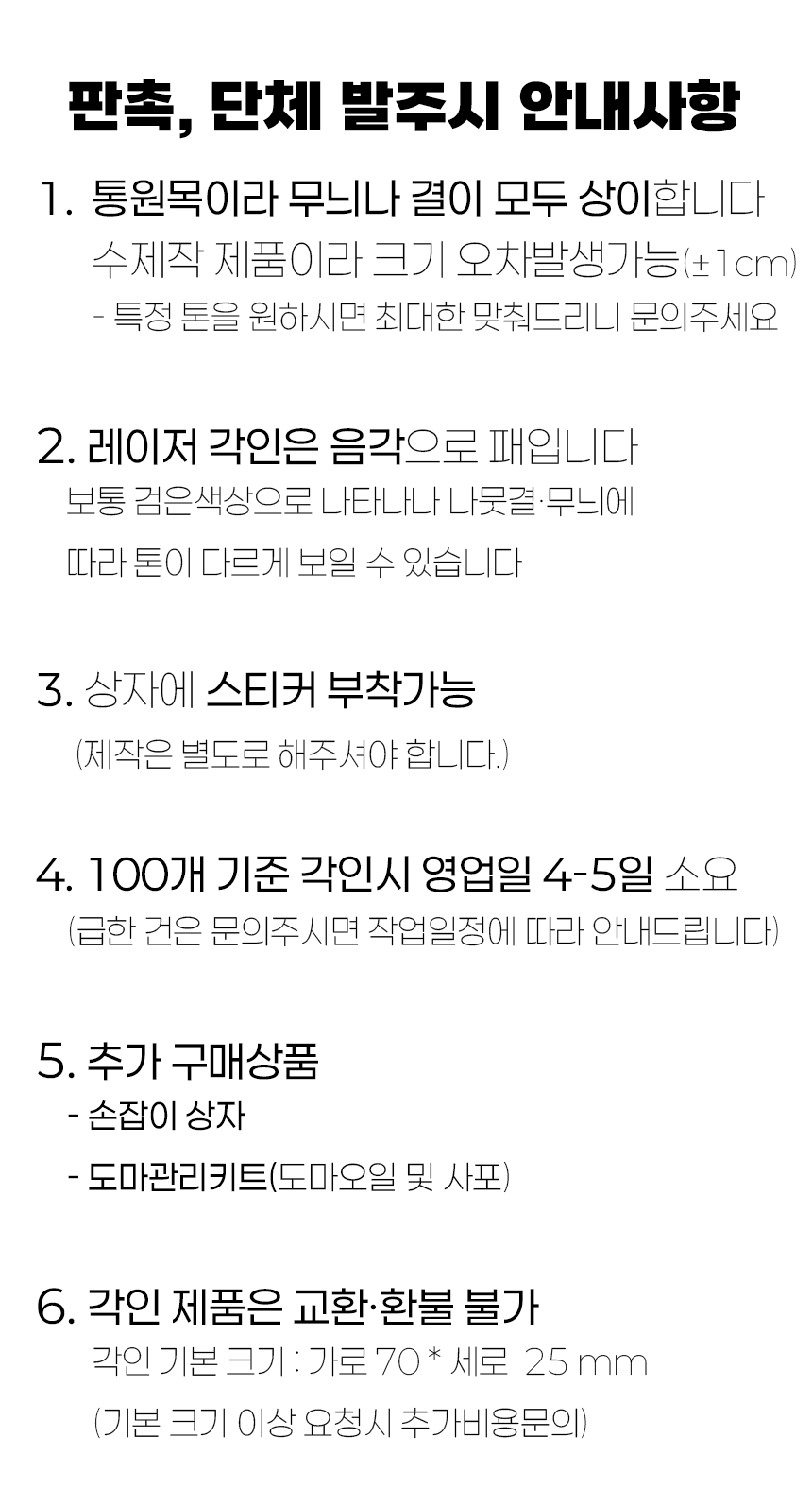 | Á¦À۱Ⱓ | 100°³ ±âÁØ- µðÀÚÀÎ ½Ã¾È È®Á¤ ÈÄ 5ÀÏ | ¹è¼ÛÁ¤º¸ | 1°³(īſ¹Ú½º 15°³ ³»¿Ü) |