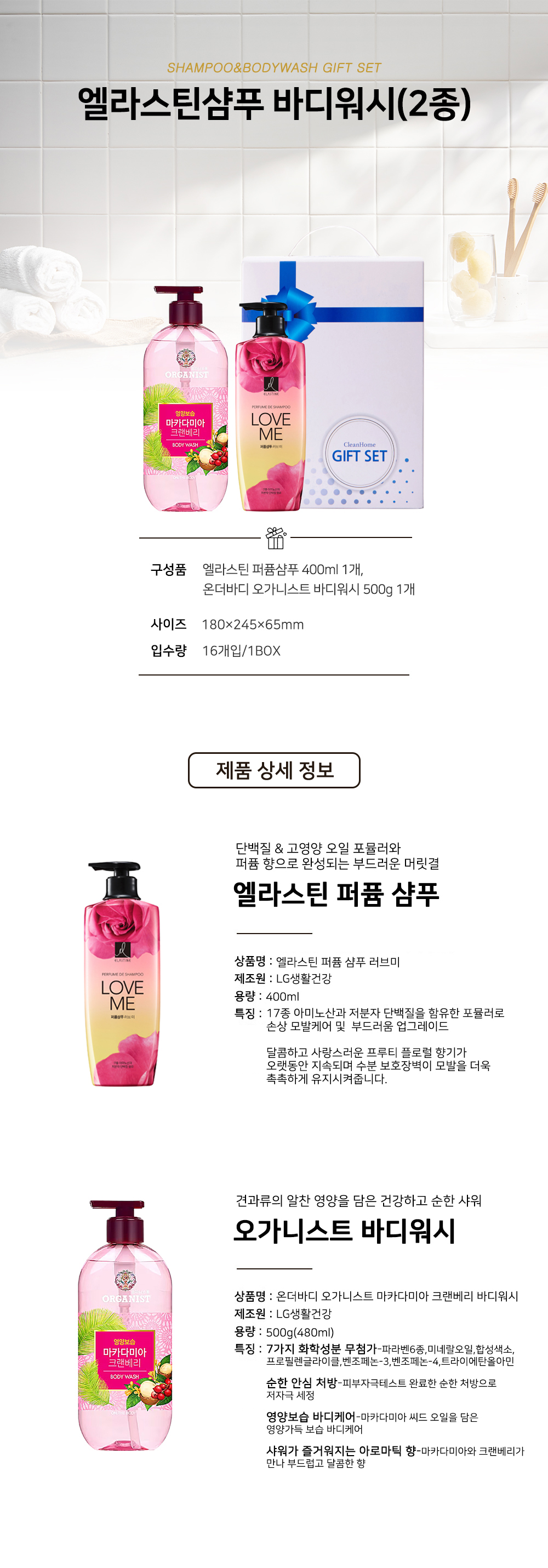| ±¸¼º | ¿¤¶ó½ºÆ¾ ÆÛǾ¼¤Çª 400ml 1°³, ¿Â´õ¹Ùµð ¿À°¡´Ï½ºÆ® ¹Ùµð¿ö½Ã 500g 1°³ | Á¦Ç°±Ô°Ý | 180¡¿245¡¿65mm |